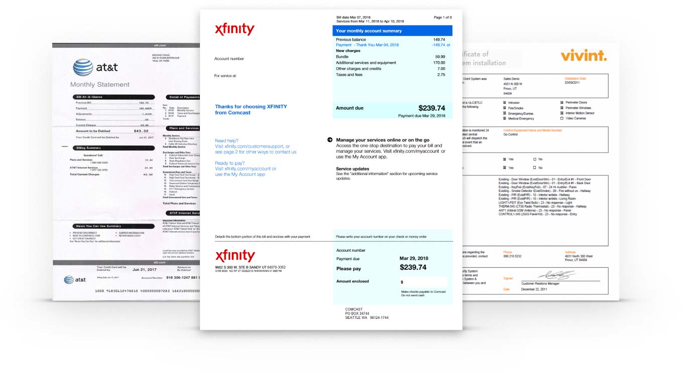 Send us all your monthly bills including cable, wireless, Internet, satellite and home security.